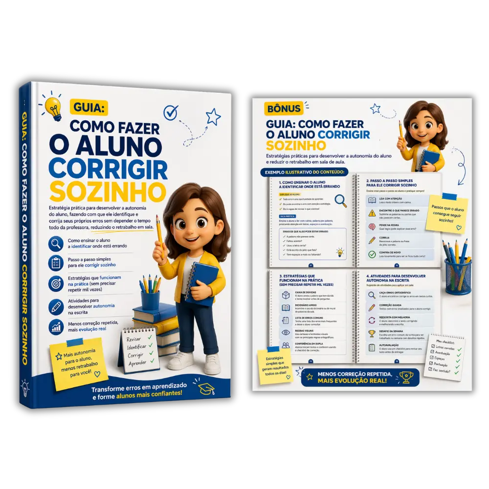 Estratégia prática para desenvolver a autonomia do aluno, fazendo com que ele identifique e corrija seus próprios erros sem depender o tempo todo da professora, reduzindo o retrabalho em sala.