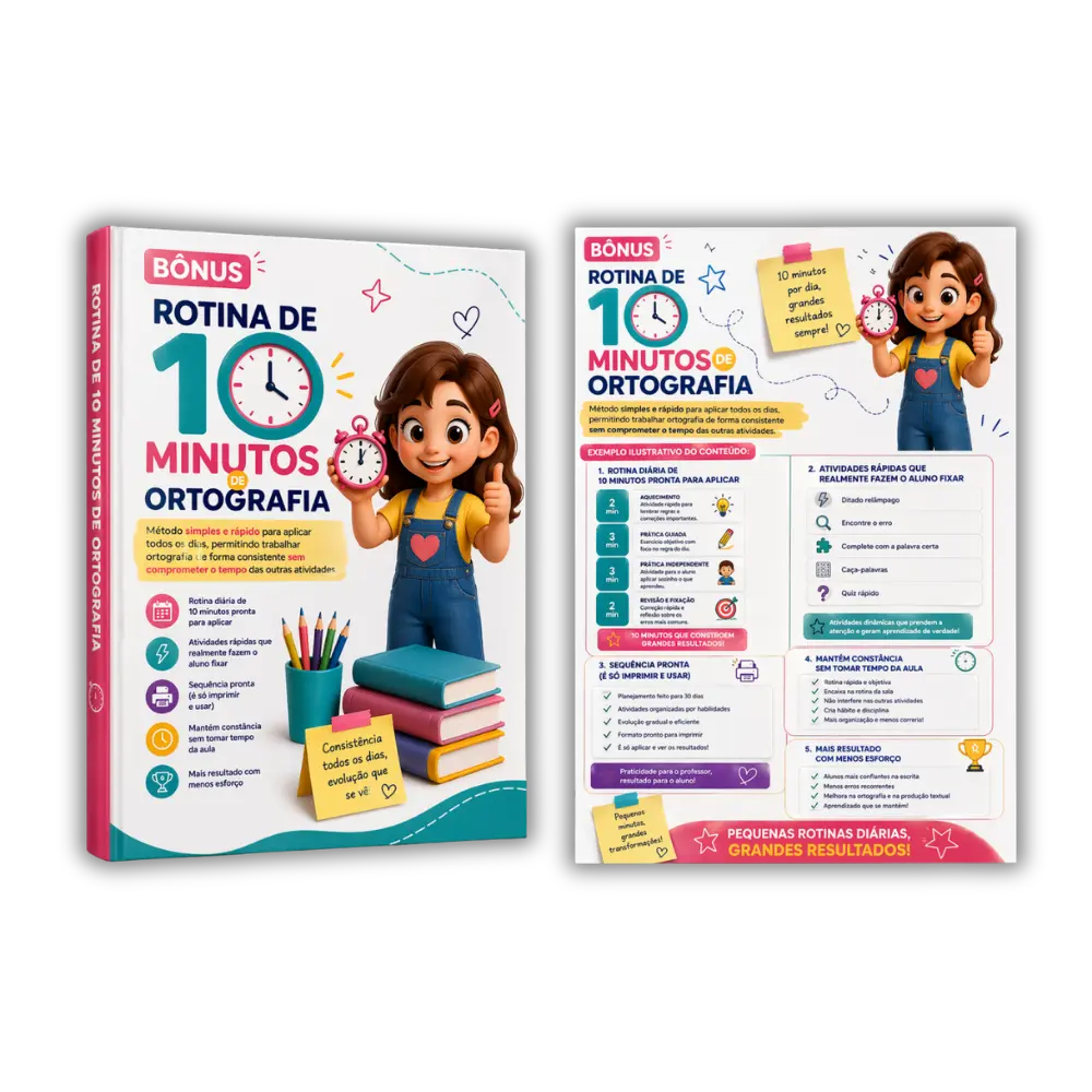 Método simples e rápido para aplicar todos os dias, permitindo trabalhar ortografia de forma consistente sem comprometer o tempo das outras atividades.