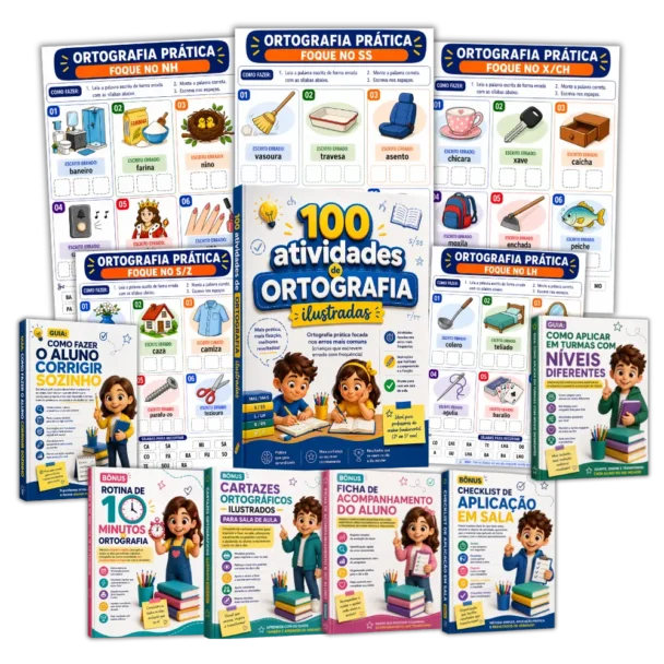 Aplique na sua sala hoje mesmo e pare de corrigir os mesmos erros de ortografia todos os dias, com atividades já testadas e organizadas para gerar resultado na prática.